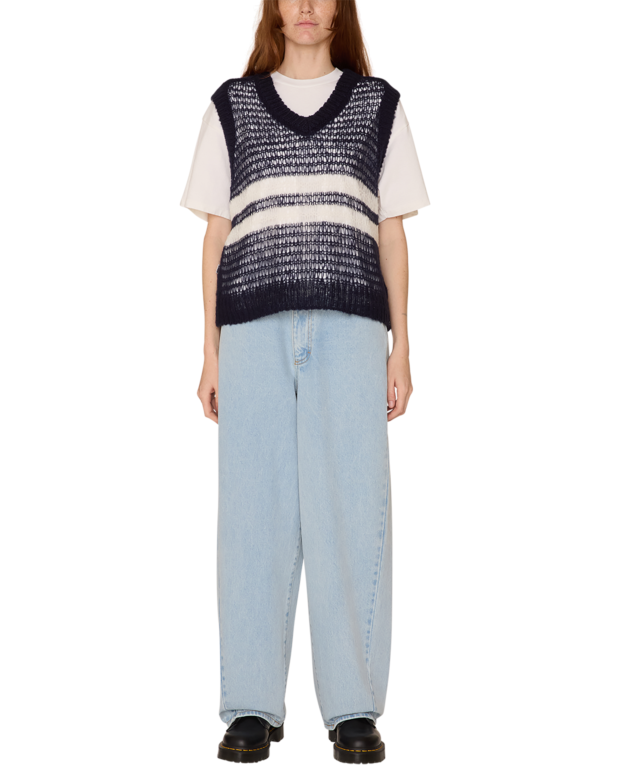 - Open Knit Striped Sweater Vest